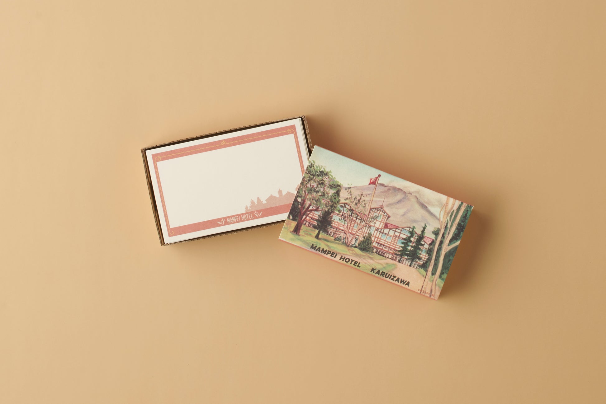 アルプス館のデザインが施された、万平ホテルオリジナルのメッセージカードです。