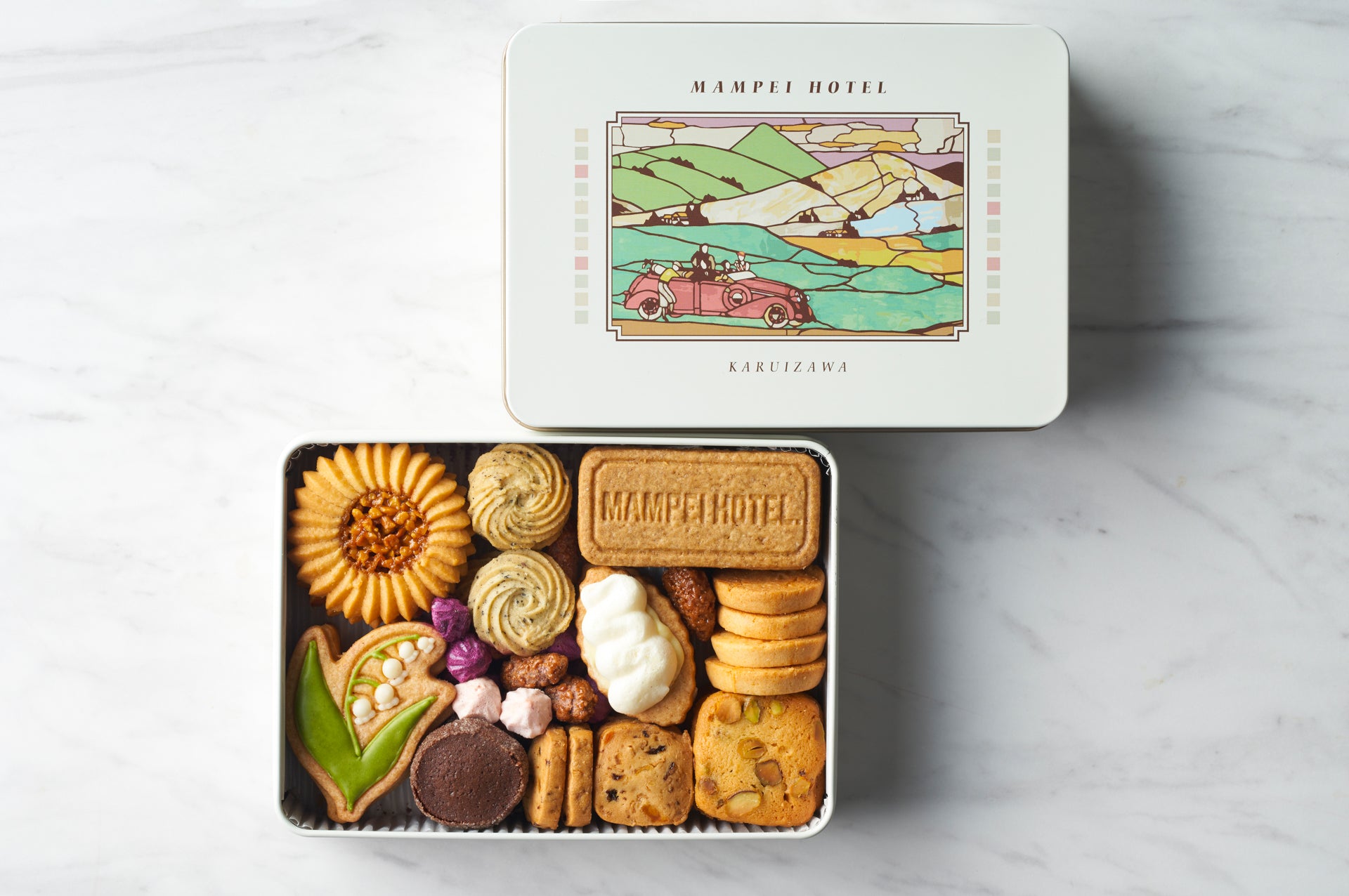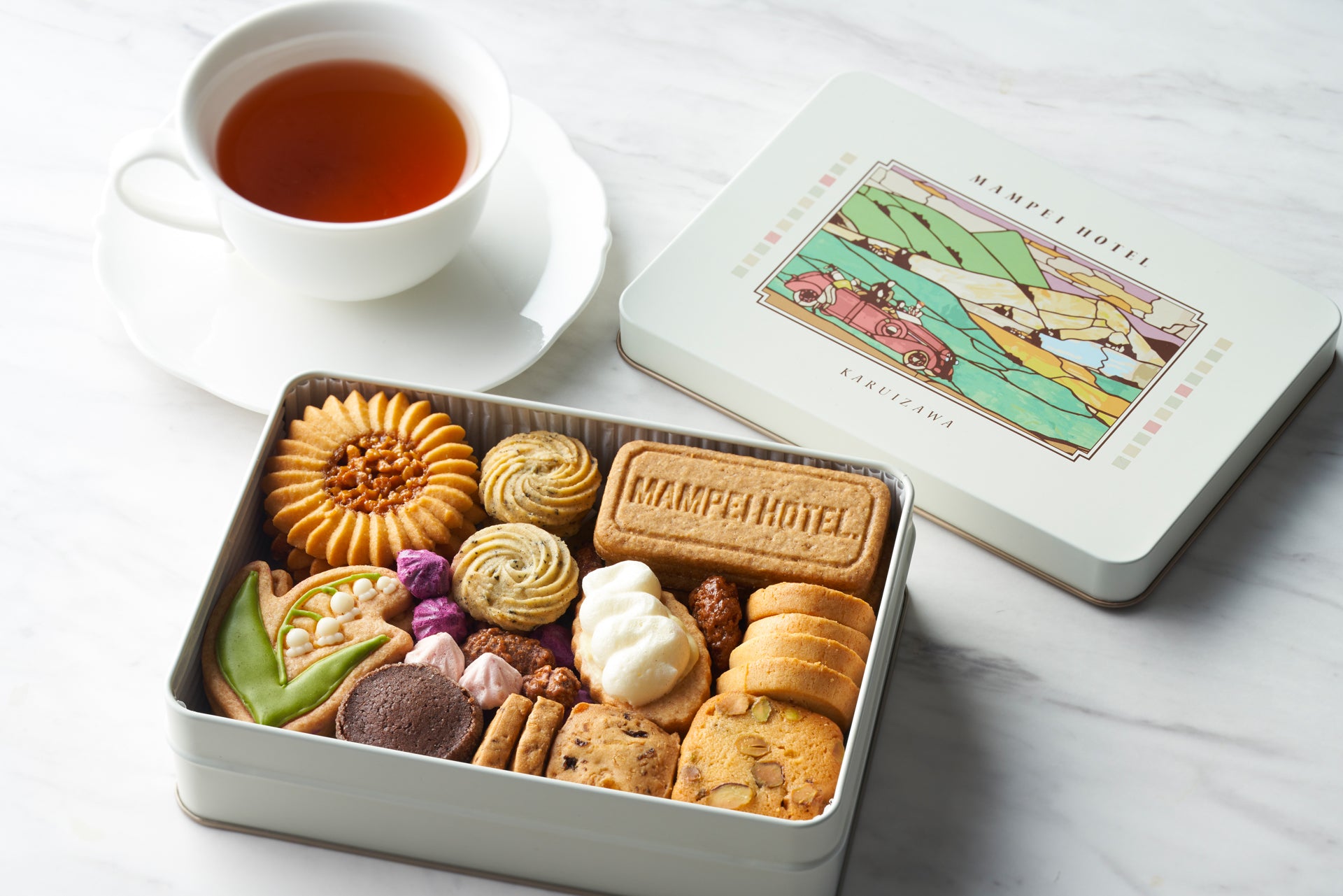 クッキーは全11種類、カフェテラスで人気のロイヤルミルクティーやアップルパイ、レモンタルトなどをイメージしたクッキーや、ホテルのシンボルであるすずらんの形のアイシングクッキー、ホテルの看板をデザインしたクッキーなど、見た目も楽しい、美味しい一缶をぜひお楽しみください!